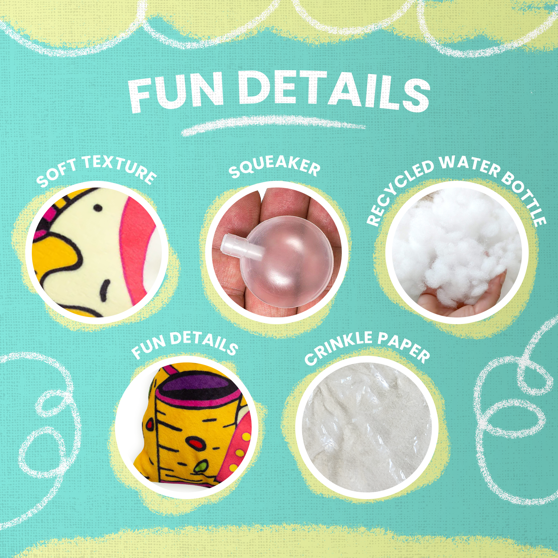 This toy is Nacho Momma so you better be nice to her! Toy contains crinkle and squeaker.