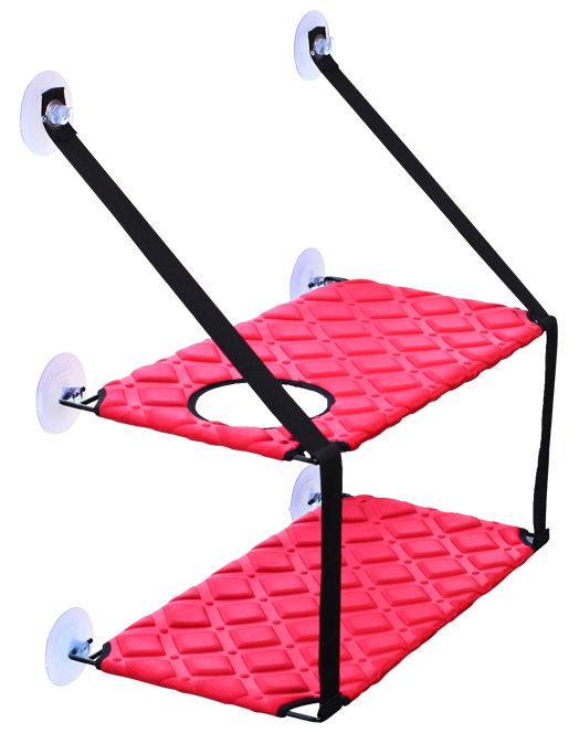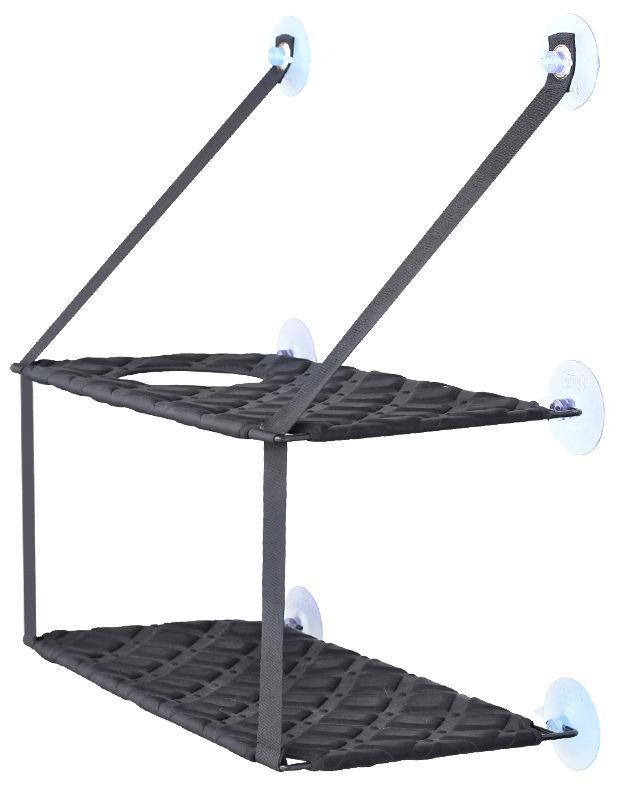 The Pet Life ® 'Cat Laze' Suction Cupped Dual-Leveled Kitty Cat Lounger is an easy-to-install dual-layered Lounger with a built-in climbing hole that is designed to suction right onto a glass wall or hard surface. Features large industrial-grade suction cups connected to a sturdy metal framed platform that is further connected to seatbelt nylon straps that are designed to withstand exceptional weight capacity capable of carrying over 75 Lbs. Each layer is composed of a cushion stitched EVA Foam-like platform that's comfortable and easy on the joint. Easy to assembled or disassemble in seconds with a pinch-to-remove suction cup flap for easy removal. Lightweight and Collapsible make it great for travel! Also makes a great floor space saver. Available in Multiple Colors.