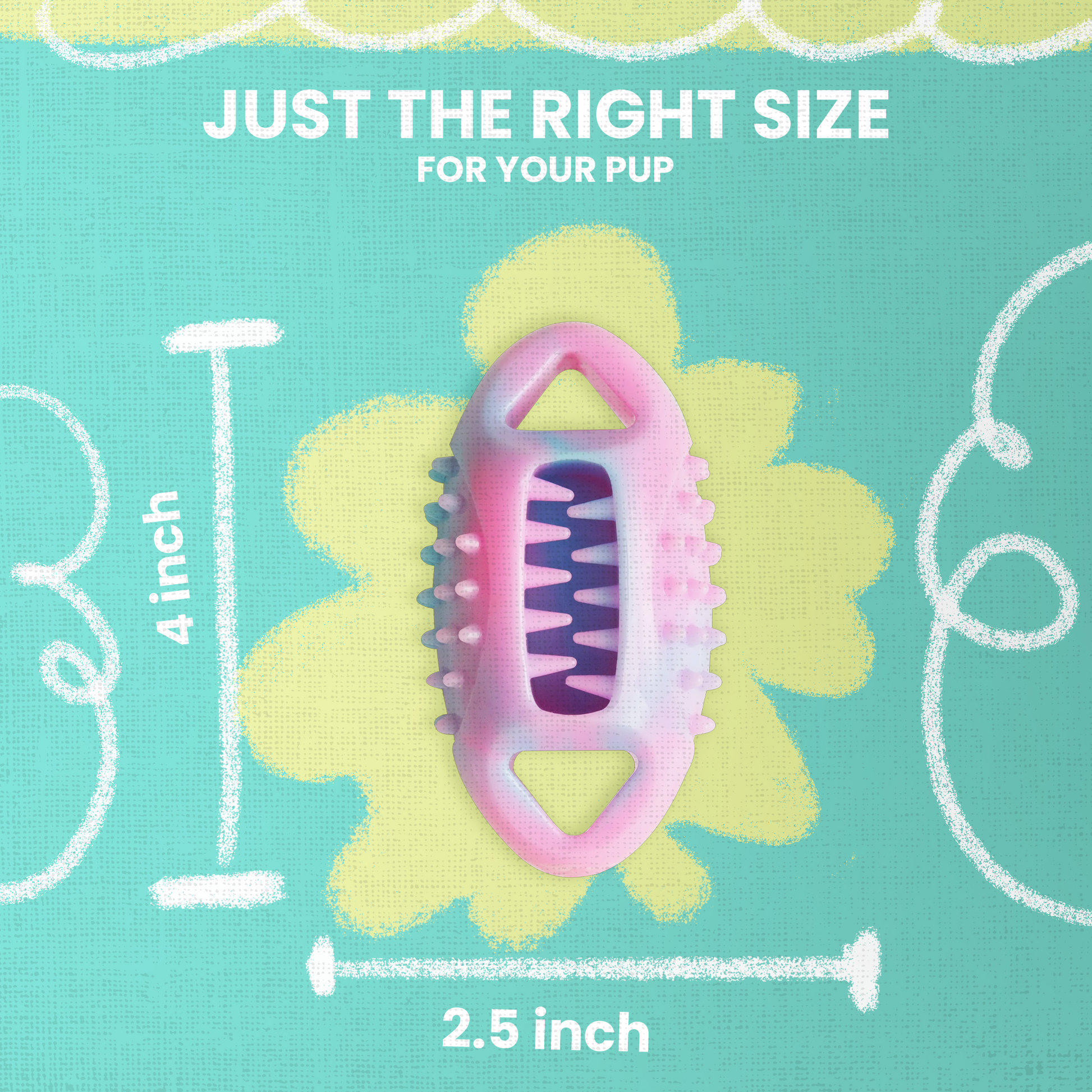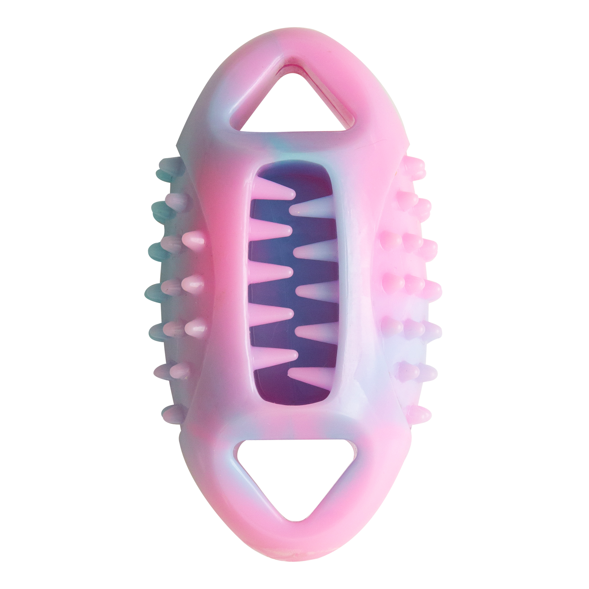 With its vibrant pastel colors and durable design, the Snug-A-Feast Football is perfect for active play and interactive solo time. The textured surface and unique shape make it easy to grip, chew, and toss, while the treat-stuffing feature turns playtime into a tasty adventure.