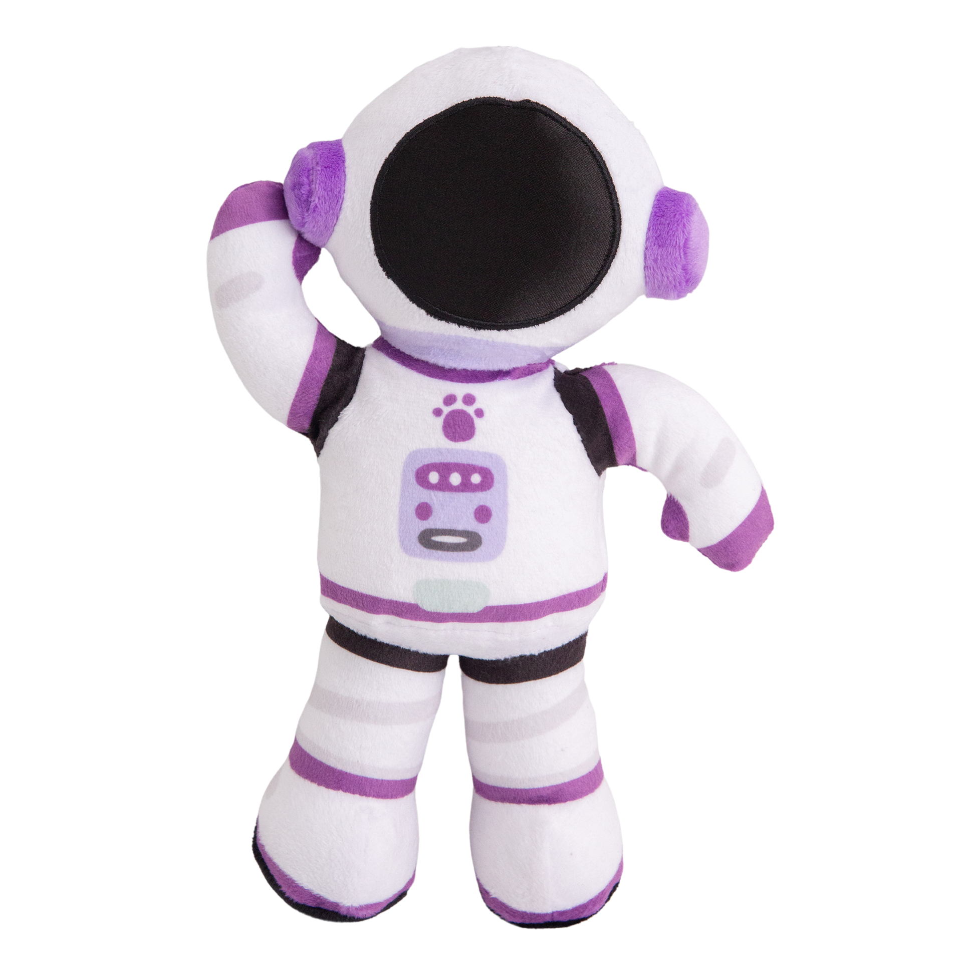 Welcome to the starry realm of play with Aurora the Astronaut, the perfect sidekick for your pup's interstellar escapades! Aurora isn't just any astronaut; this friendly cosmic explorer comes dressed in a luxuriously plush spacesuit, tailor-made for a multitude of galactic adventures. Embracing an eco-friendly ethos, these toys are skillfully crafted from recycled water bottles, merging sustainability with fun. Equipped with an engaging built-in squeaker and irresistible crinkle material, Aurora promises non-stop entertainment. At a substantial 10 inches, Aurora is primed for epic space journeys. Get your furry friend ready for a thrilling ride across the galaxy with Aurora the Astronaut, their new celestial companion!11"x4"x1.5".