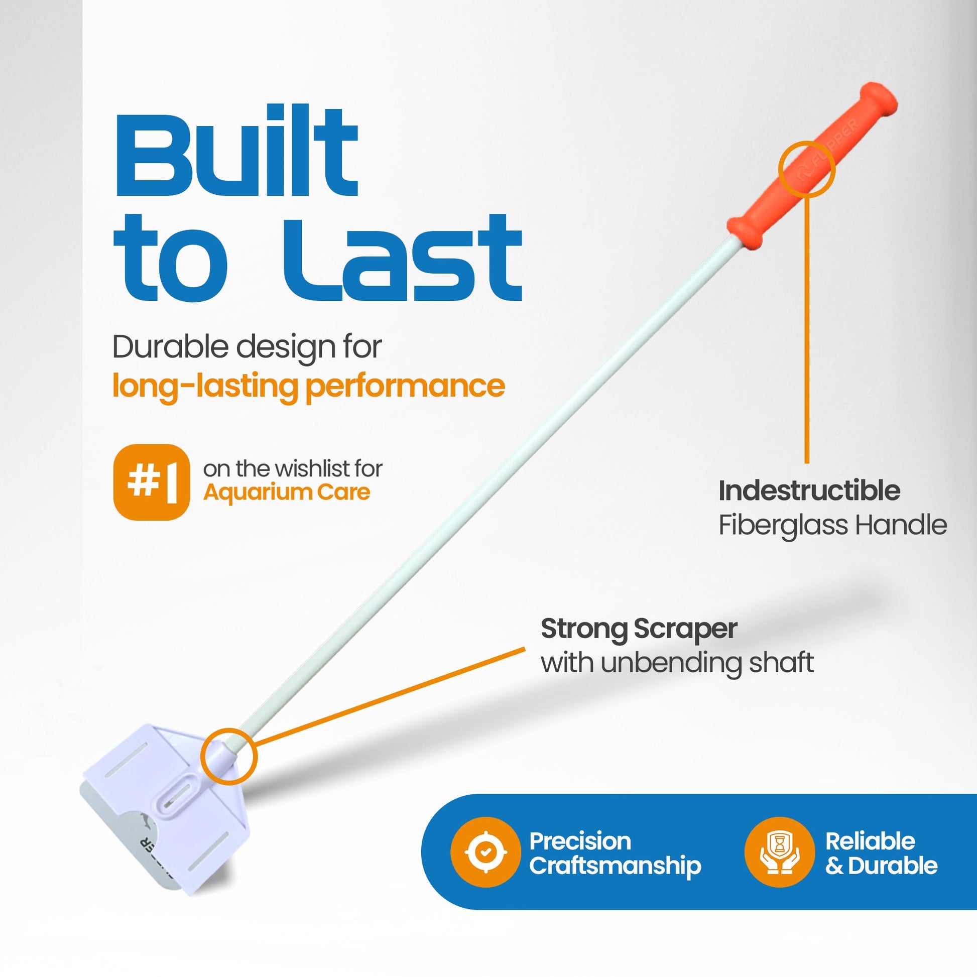 - Optional stainless steel blade (sold separately) is great for tackling really hard algae deposits all over your tank (for glass tanks only).