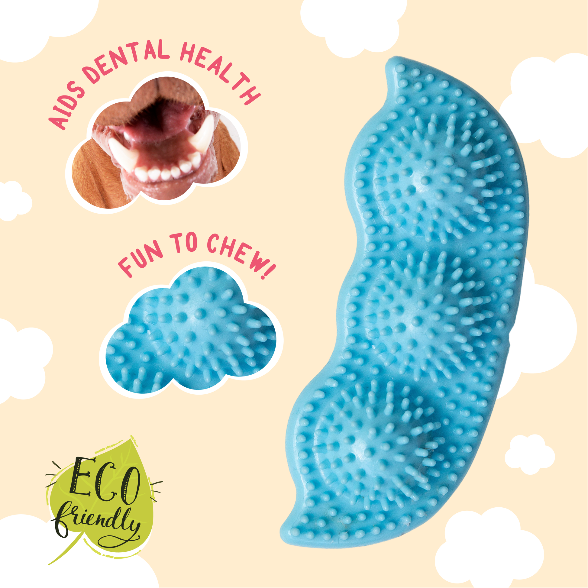 These Eco friendly TPR Pea Podz toys are perfect for your little pup who loves to chew. Designed to aid in dental health. Perfect for the lil chewer. Made from eco friendly materials