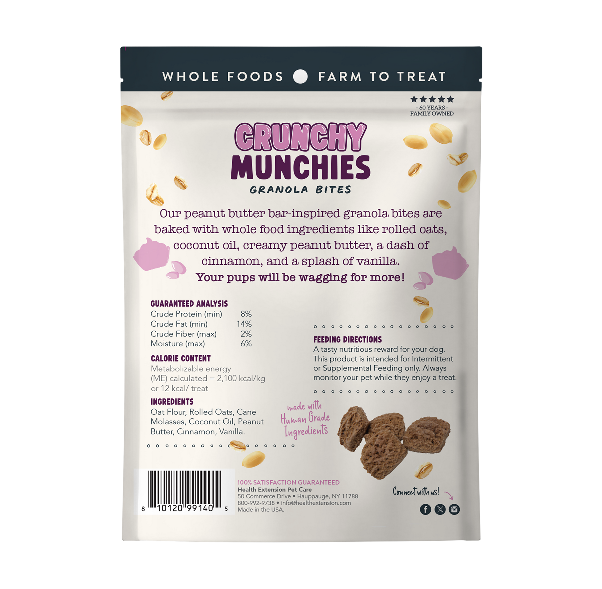 Spoil your pup with the nutty goodness of Peanutty Squares! These peanut butter bar-inspired granola bites are crafted with wholesome, human-grade ingredients to create the ultimate crunchy treat. Packed with creamy peanut butter, rolled oats, and a touch of coconut oil, these bites deliver irresistible flavor and a satisfying crunch in every bite. A hint of cinnamon and vanilla rounds out the recipe for a treat your dog will go nuts over! Perfect as a reward or an occasional snack, Peanutty Squares are made without artificial additives, ensuring your dog gets only the best. Every bite supports a happy, healthy lifestyle, making it a treat you can feel good about sharing with your furry friend.