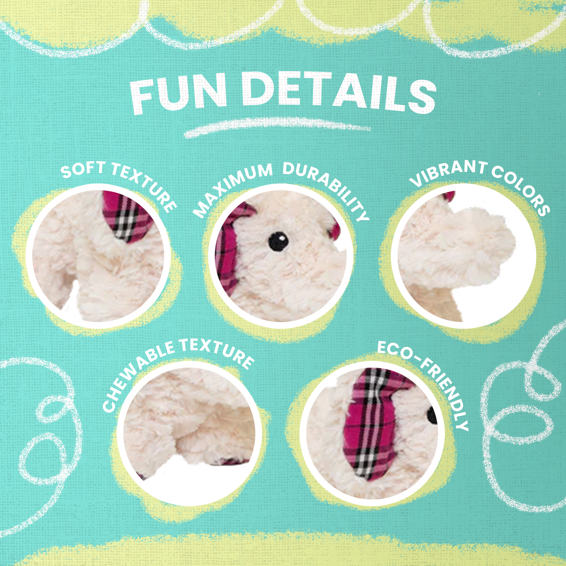 • Cuddly Texture with Plaid Accents: Ella boasts a soft, plush exterior adorned with charming plaid details, making her an appealing companion for both playtime and snuggles.