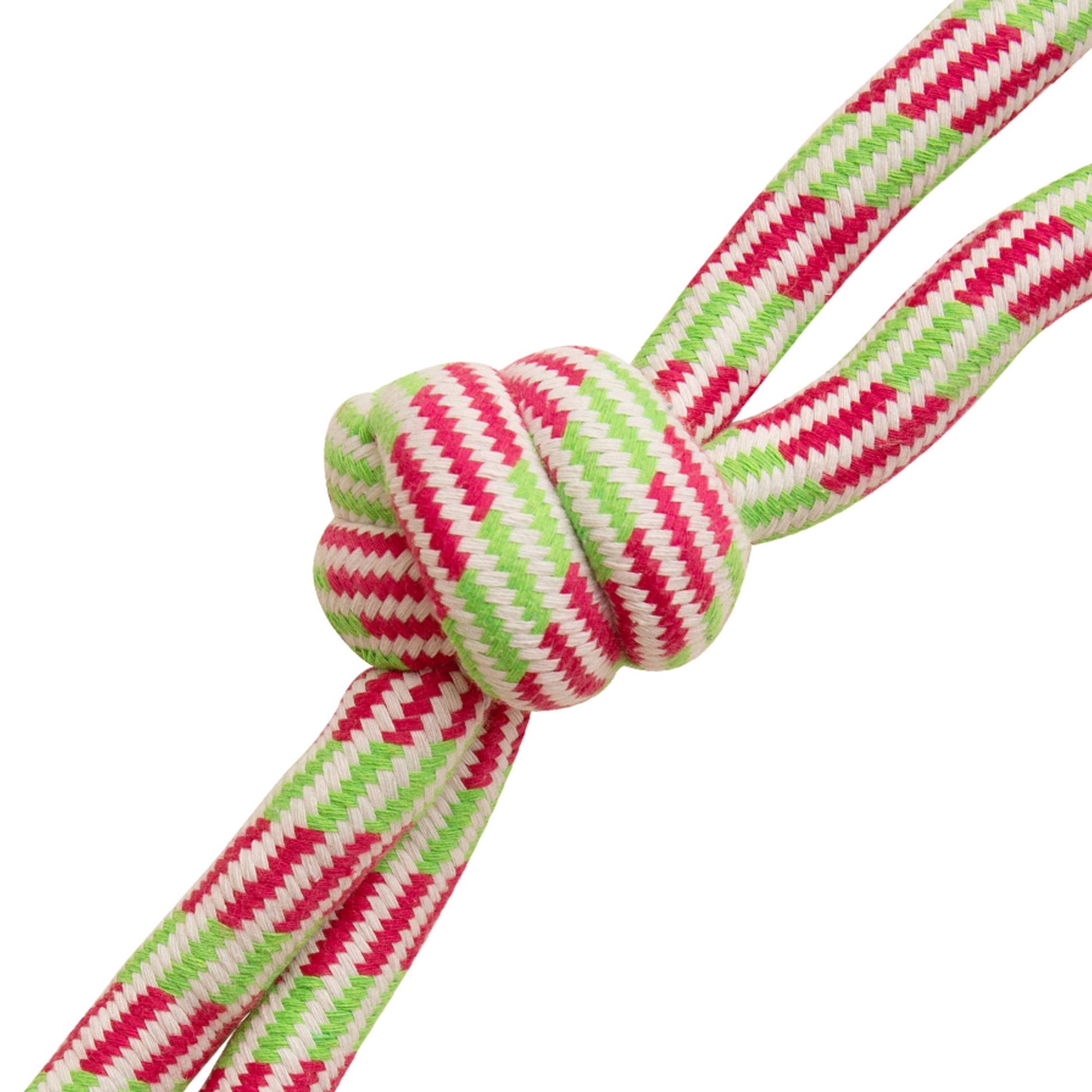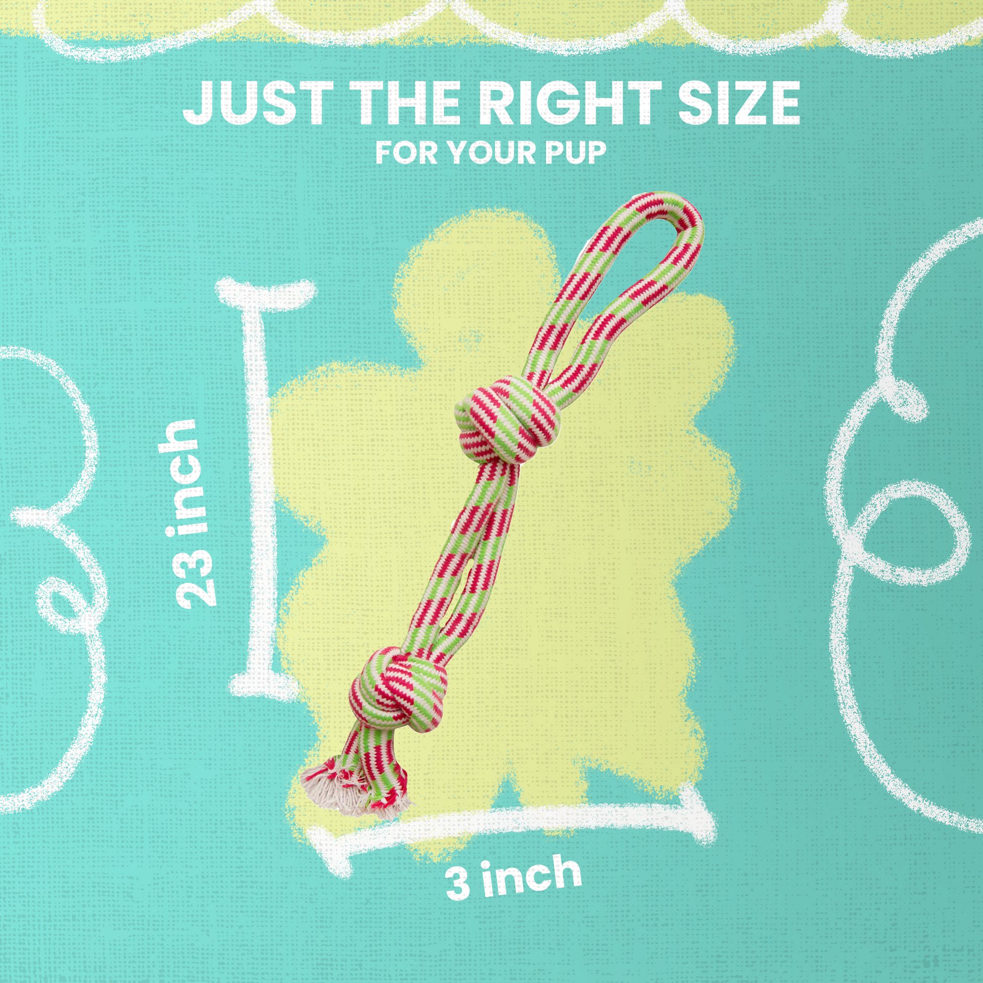 Enhance playtime with the Fling 'N Floss, a dynamic tug and fetch rope toy for your pup. Boasting two tightly braided rope knots perfect for chewing and a convenient loop handle for easy tugging or throwing, it's ideal for interactive games. Made from non-toxic cotton rope, it's both safe and fun for endless fetching and tugging joy. 23"x2"x3".