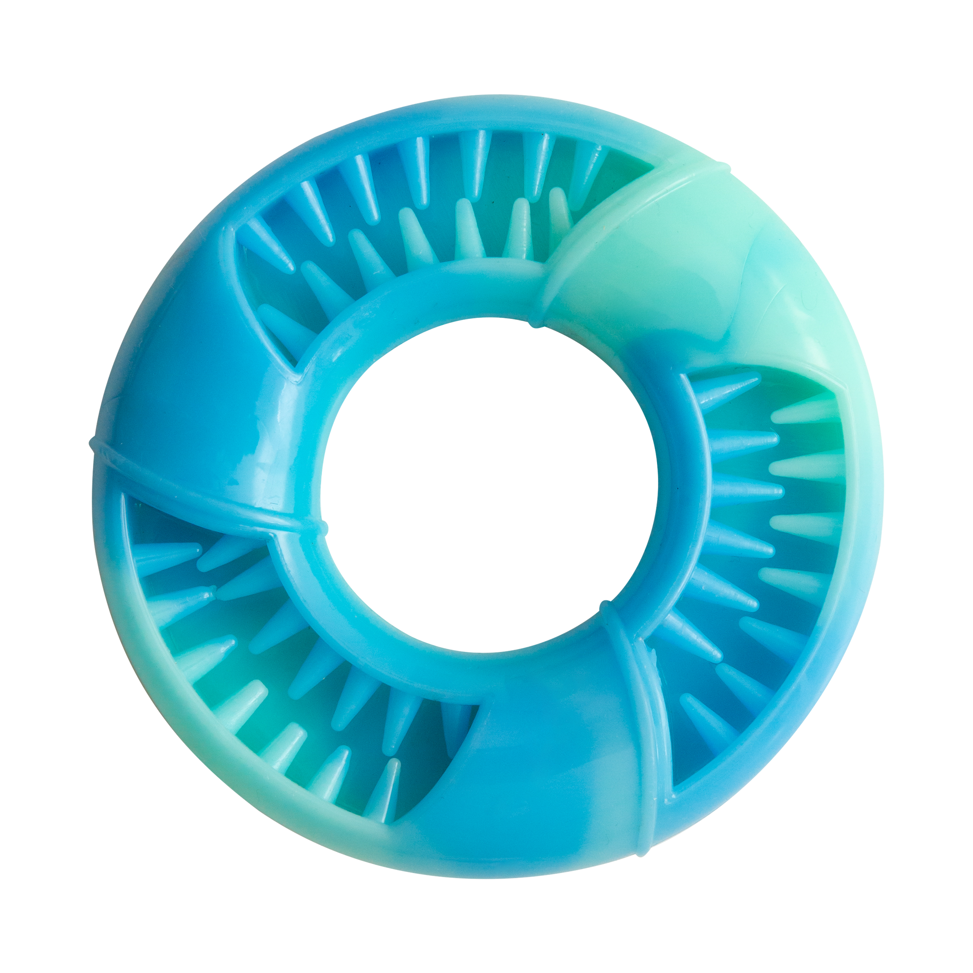 Available in vibrant blue and pastel pink, this ring-shaped toy is perfect for tossing, chewing, and engaging your pup’s natural instincts. The textured surface adds an extra element of fun, while the treat-stuffing feature makes every play session a tasty adventure.
