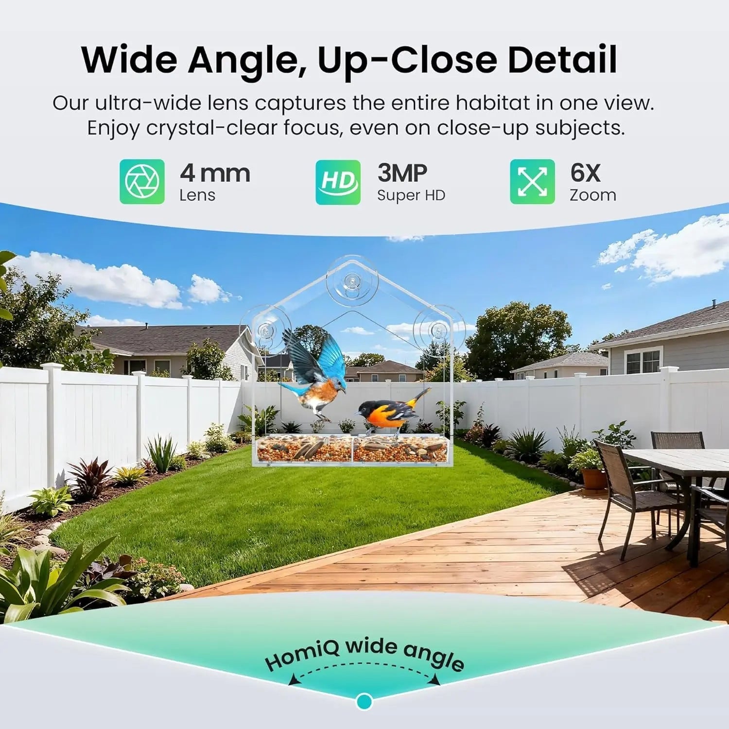Watch Your Pets in Ultra-HD — Day or Night The HomiQ Life 3 MP 2K Pet Camera brings crystal-clear monitoring to aquariums, terrariums, and window bird feeders. With close-focus Ultra-HD optics, smart motion detection, and color night vision, you can observe every detail of your fish, reptiles, or feathered visitors anytime — even in complete darkness.