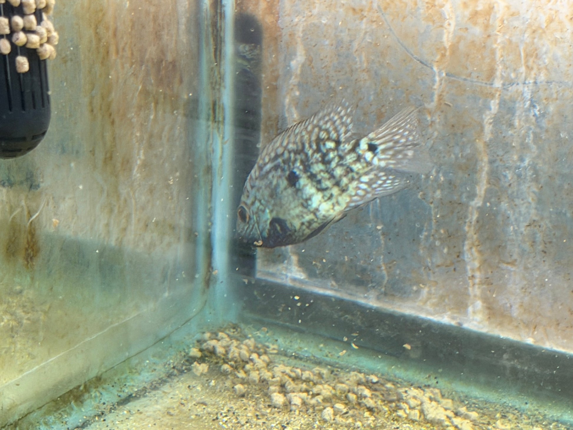 The Carpintis Cichlid (Herichthys carpintis), also known as the Green Texas Cichlid or Pearlscale Cichlid, is a moderately large cichlid originating from the Rio Pánuco drainage in Mexico. It features a greyish-blue body with distinctive light blue or green spots, becoming more intensely colored during breeding. They are omnivorous, hardy, and easy to breed, but they are also aggressive and territorial, requiring large tanks with plenty of hiding places.