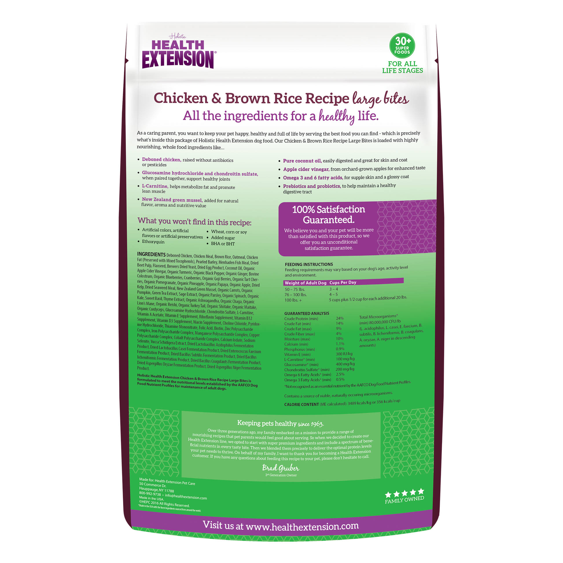 Holistic Health Extension Chicken & Brown Rice Recipe Large Bites is formulated to meet the nutritional levels established by the AAFCO Dog Food Nutrient Profiles for maintenance of adult dogs.