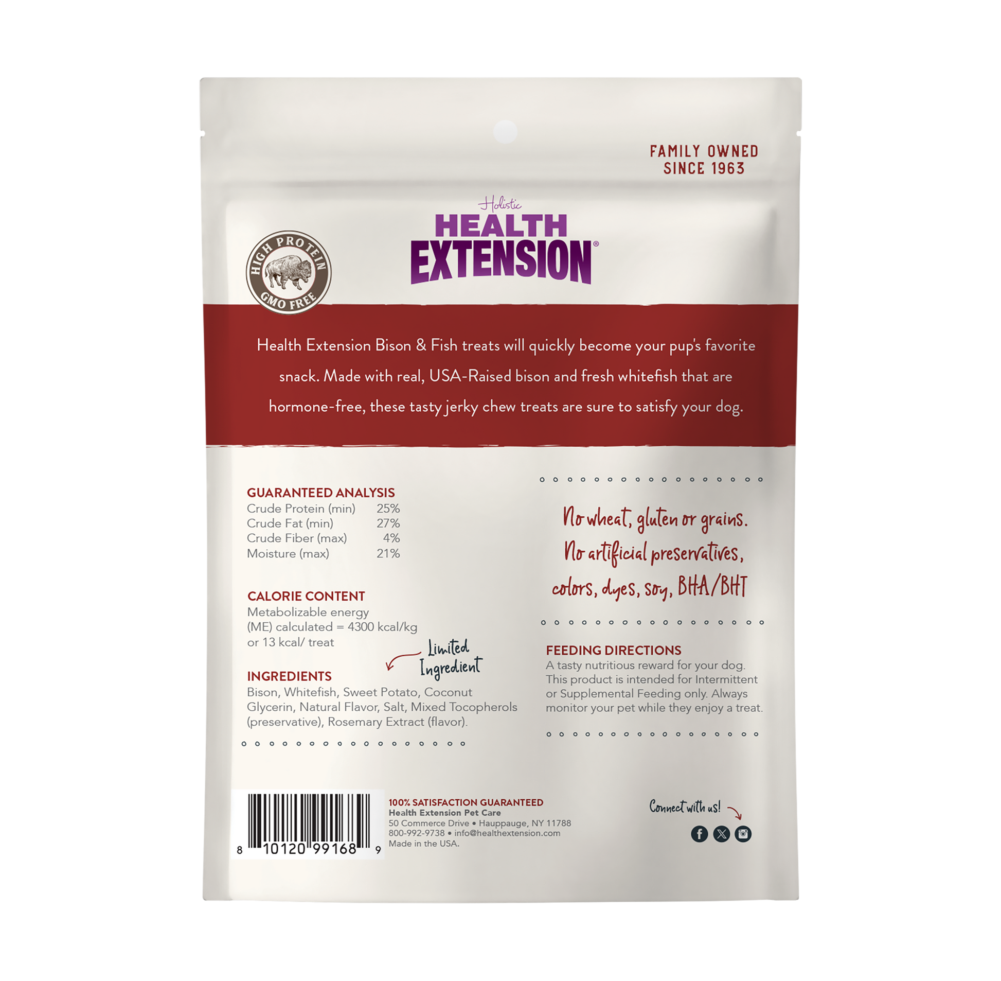 Give your furry friend a high-protein, wholesome treat with Health Extension Bison & Fish Dehydrated Jerky. Made with 85% bison and whitefish, these natural treats are packed with flavor and essential nutrients to support your dog’s overall health. Crafted with limited ingredients, they are perfect for pups with food sensitivities or those on a grain-free diet.