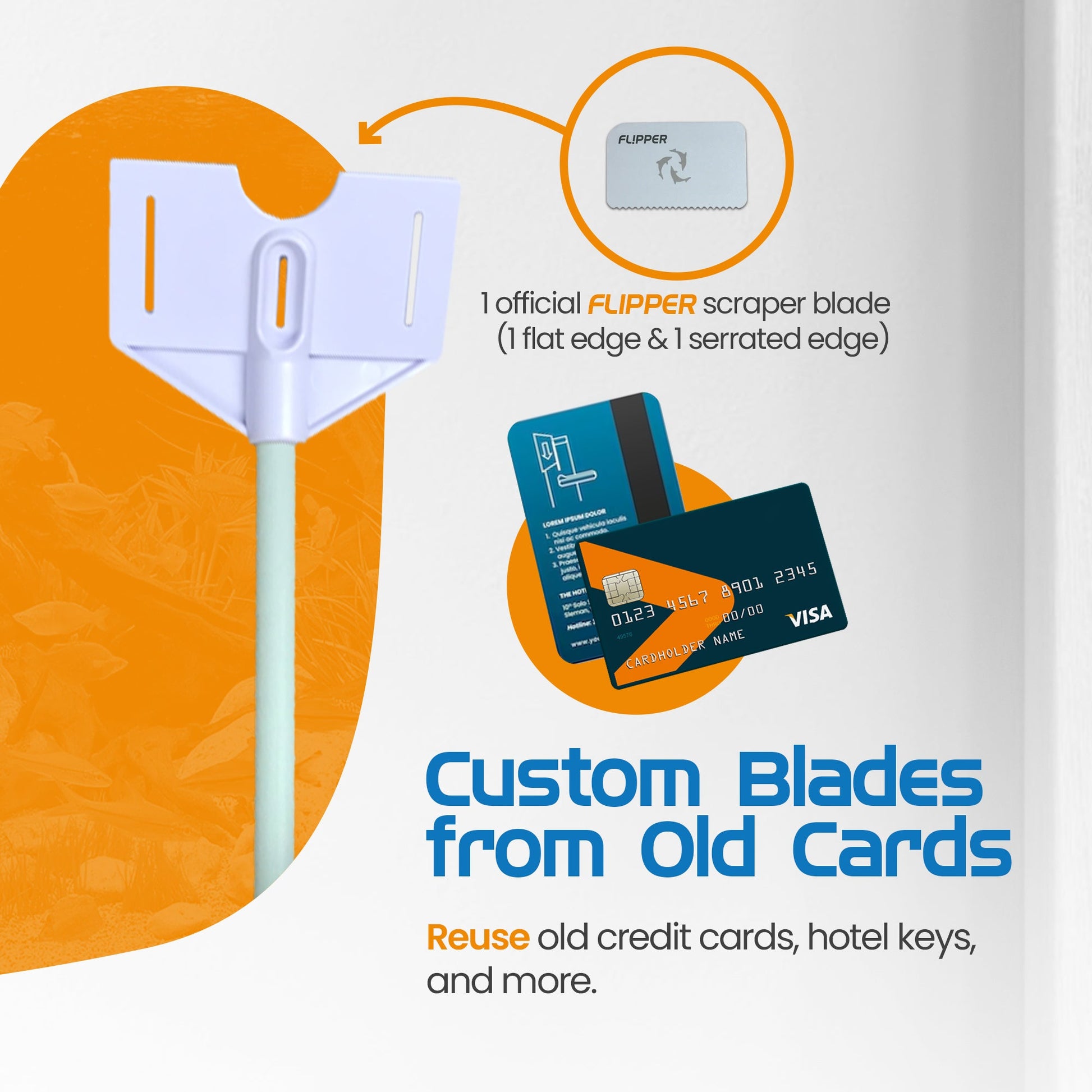 - Patent pending design allows you to use any old credit card, gift card, hotel room key etc as a scraper blade....you may never have to buy blades again!